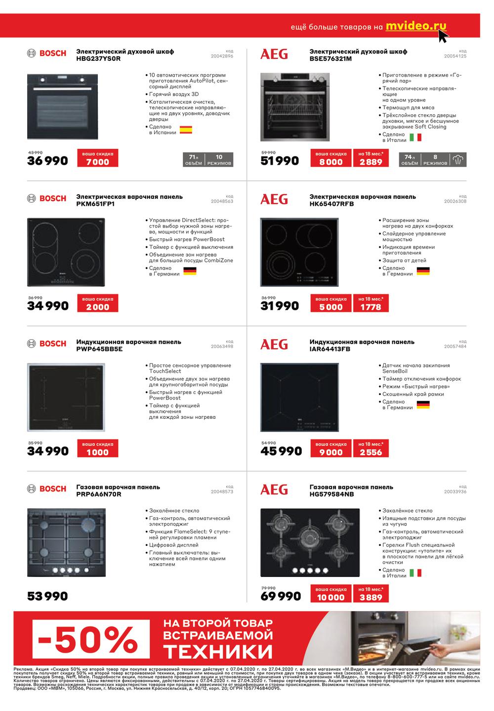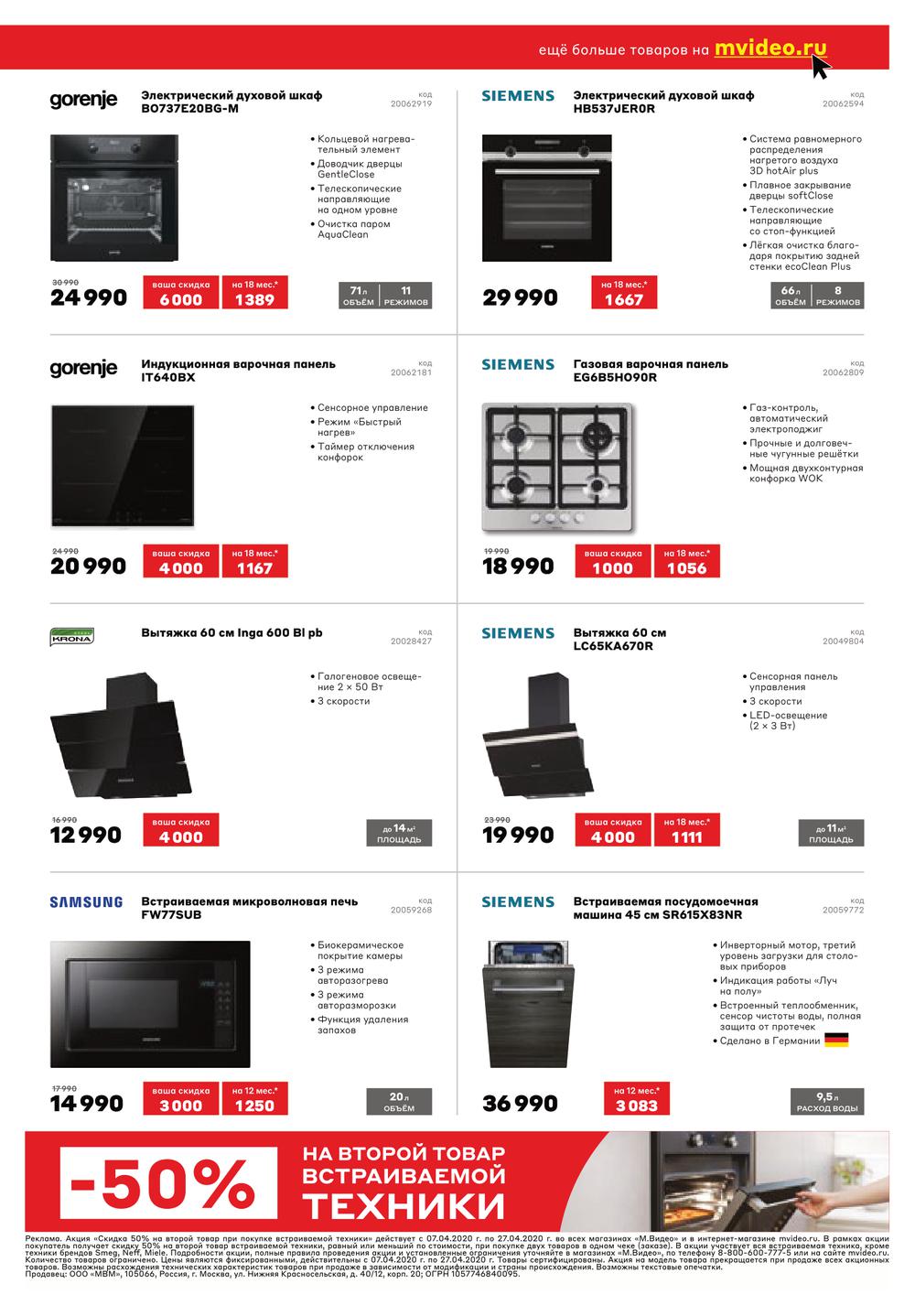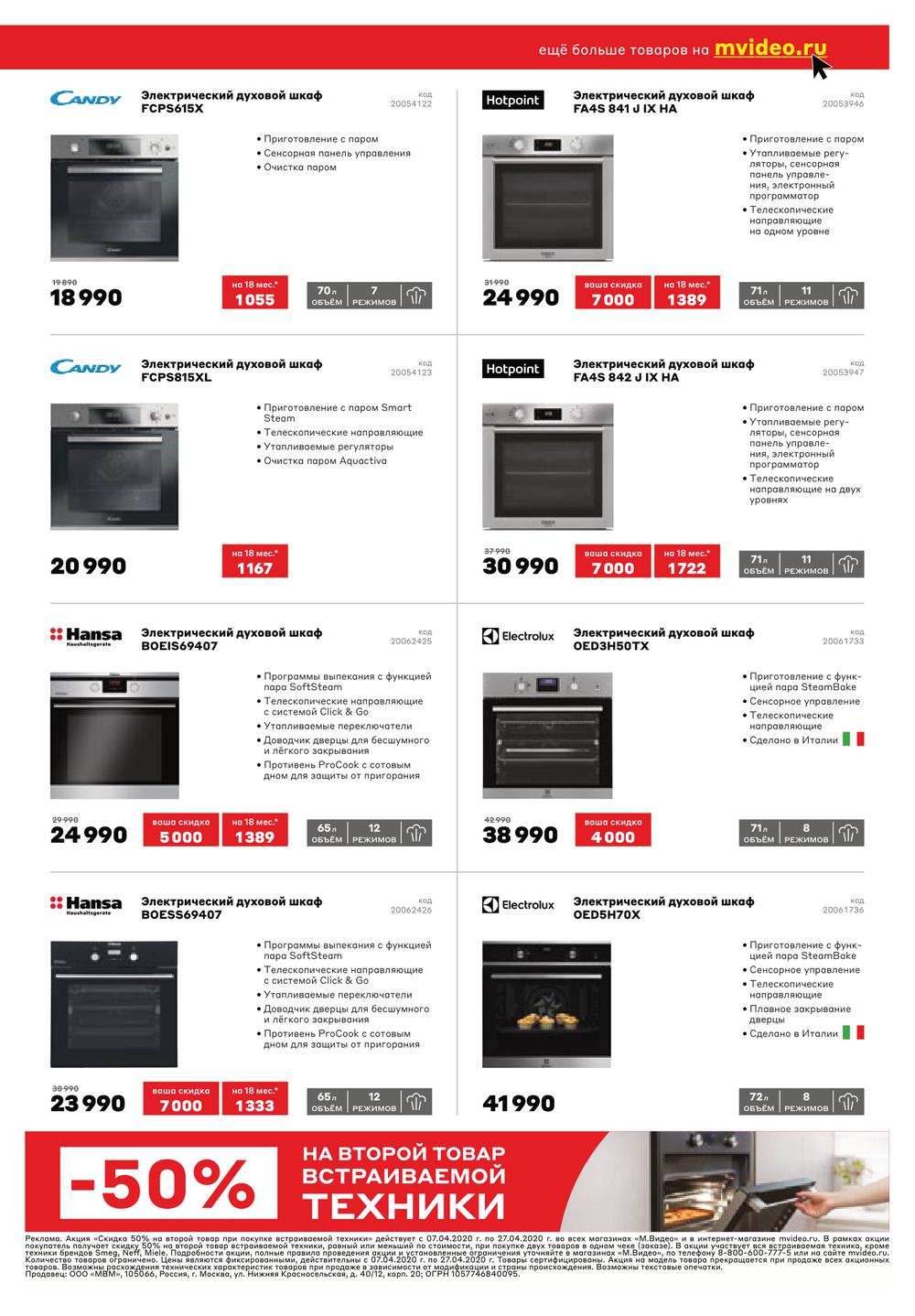 М.Видео «-50% на второй товар встраиваемой техники»